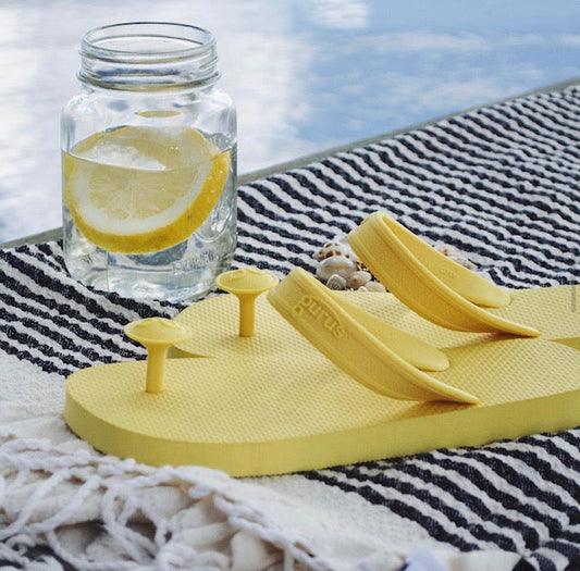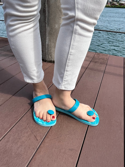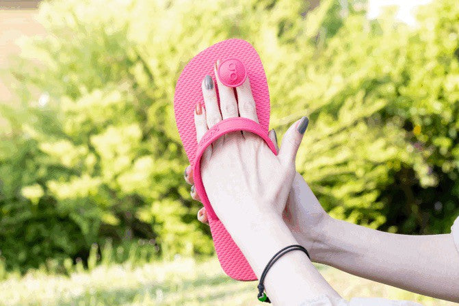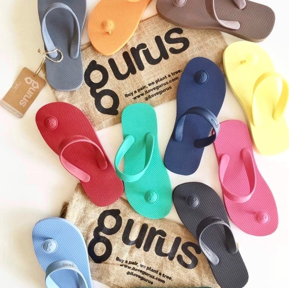 With our signature toe-post and twist-to-adjust strap Gurus are made to stay on your feet! Unlike regular flip-flops which always fall off.